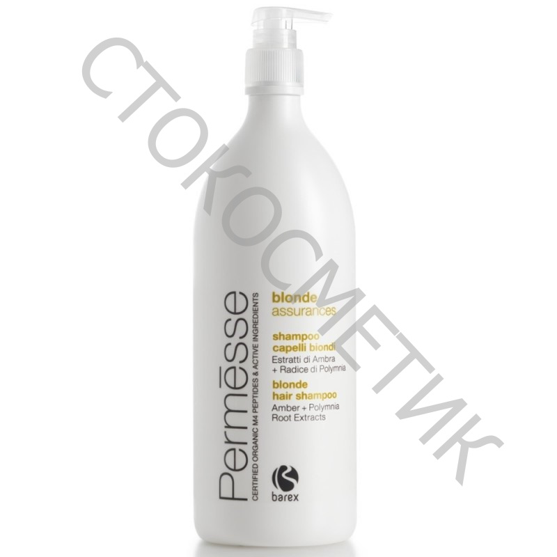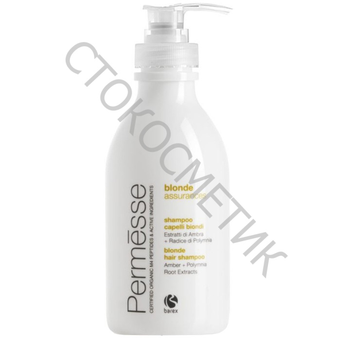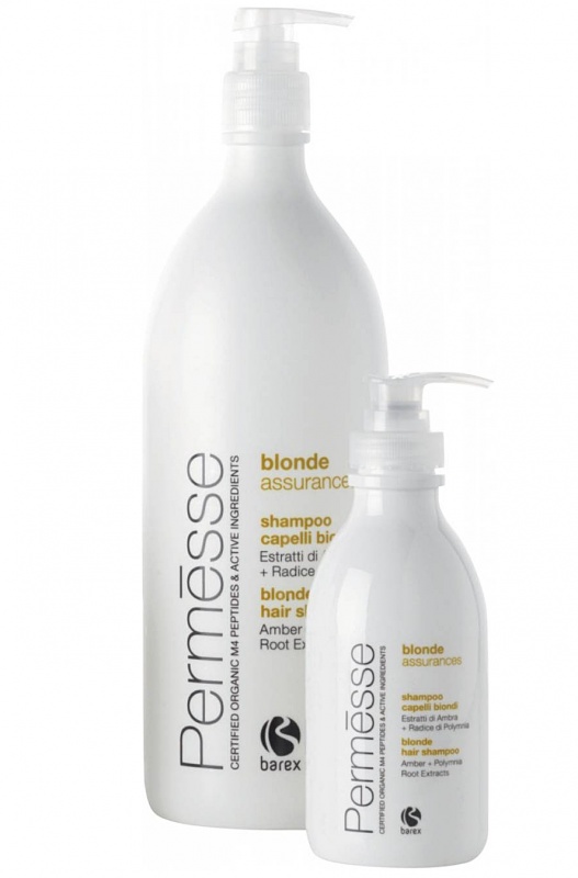 Barex (Барекс) Шампунь для осветленных волос с пептидами M4, экстрактами янтаря и корня полимнии (Permesse blonde assurances | Blonde hair shampoo), 250/1000 мл.Рекомендуется для ухода за обесцвеченными и окрашенными в светлые тона волосами после процедуры окрашивания и для использования в домашних условиях. Деликатно очищает волосы, способствует сохранению блонд - тонов.