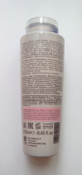В составе шампуня Barex Anti-Yellow есть У/Ф фильтры, защищающие косметический цвет от негативного влияния солнечных лучей и от выцветания.