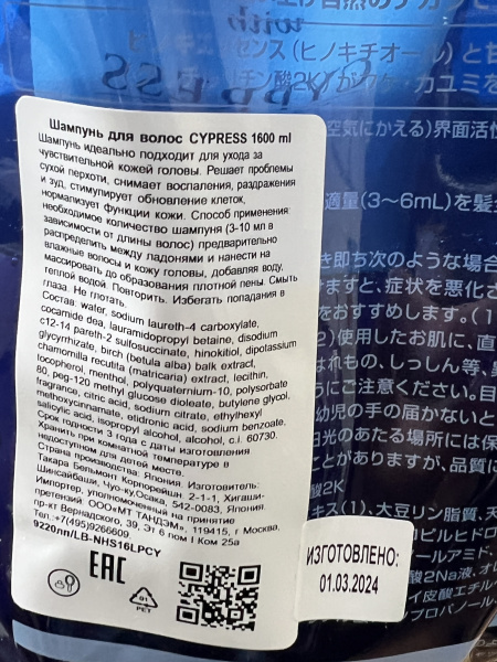 Ингредиентный состав: масло японского кипариса, экстракт корня солодки, соевый лецитин, экстракт ромашки, экстракт березы, UV-протектор. Масло кипариса, известное антибактериальным действием, лечит и оздоравливает кожу головы. Экстракт корня солодки предотвращает перхоть и снимает зуд. Соевый лецитин выполняет защитную функцию. Экстракт ромашки прекрасно увлажняет волосы. Экстракт березы стягивает поры.
