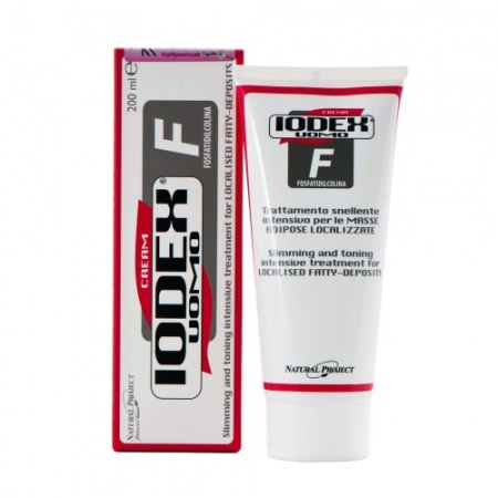 А также присутствующий в формуле Йод органический усиливает клеточный обмен, улучшая сокращение жирных кислот. Массаж с использованием средств Iodex Uomo F, богатые экстрактами колы, гинко билоба и гуараны, способствует значительному уменьшению жировых масс и тонизирует кожу. Iodex Uomo F - fosfatidilcolina - crema - это разогревающее интенсивно сокращающее жировые отложения средство с 5% комплексом Lipobreak.